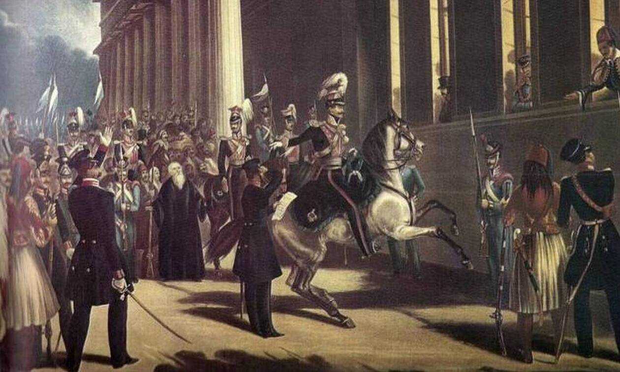 Τότε, ο βασιλιάς αναγκάσθηκε να εμφανισθεί από ένα παράθυρο των Ανακτόρων (το τέταρτο δεξιά των Προπυλαίων της Βουλής, πάνω από το μνημείο του Άγνωστου Στρατιώτη) και να ανοίξει διάλογο με τον έφιππο Καλλέργη, ο οποίος του εξήγησε ότι λαός και στρατός απαιτούν την άμεση σύγκληση Εθνοσυνέλευσης για την κατάρτιση Συντάγματος. Ο βασιλιάς προσπάθησε να κερδίσει χρόνο και υποσχέθηκε την εκπλήρωση του αιτήματος την επομένη. Ο Καλλέργης ήταν ανένδοτος και ζήτησε την άμεση αποδοχή του αιτήματος, ενώ αξίωσε ακόμη την παραίτηση της κυβέρνησης και τον σχηματισμό κυβέρνησης που θα απολάμβανε την εμπιστοσύνης του λαού και την αποπομπή των Βαυαρών από τη δημόσια διοίκηση, εκτός των αποδεδειγμένα φιλελλήνων.