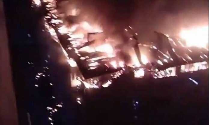 Η εκκένωση βρίσκεται σε εξέλιξη ενώ περίπου 140 πυροσβέστες με 40 οχήματα επιχειρούν να ελέγξουν τη φωτιά, η οποία έχει εξαπλωθεί σε περιοχή περίπου 2.500 τ.μ., ανέφερε το υπουργείο έκτακτης ανάγκης το βράδυ της Κυριακής.