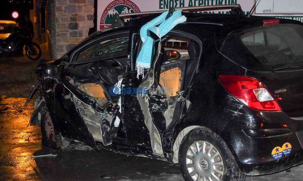 Το αυτοκίνητο καταστράφηκε ολοσχερώς και οι τραυματίες εγκλωβίστηκαν μέσα σε αυτό.