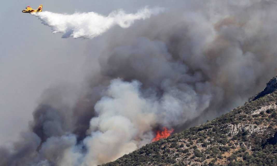 Από αέρος συνδράμουν στην επιχείρηση κατάσβεσης δύο αεροσκάφη.