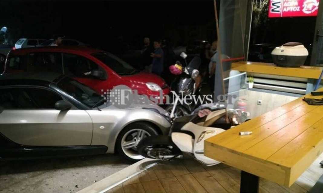 Ευτυχώς τα μέλη της παρέας γλύτωσαν με τράυματα στα πόδια, γιατί, πρώτον, στην είσοδο υπήρχε σκαλοπάτι και δεύτερον γιατί μπροστά από το κατάστημα ήταν σταματημένα ένα ΙΧ αυτοκίνητο και μια μηχανή που ανέκοψαν την ταχύτητα του αυτοκινήτου του 25χρονου.