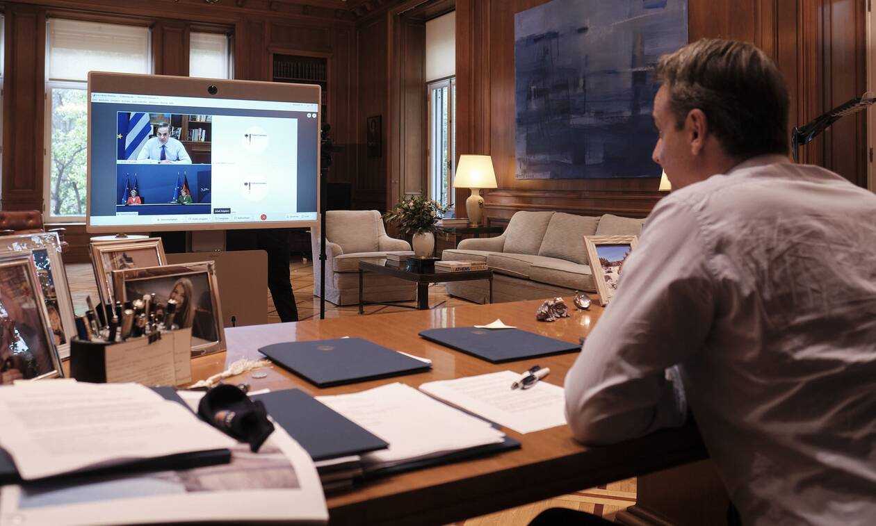 Ο Πρωθυπουργός Κυριάκος Μητσοτάκης είχε σήμερα τηλεδιάσκεψη με την Πρόεδρο της Ευρωπαϊκής Επιτροπής Ούρσουλα Φον Ντερ Λάιεν και την Καγκελάριο της Γερμανίας, Άνγκελα Μέρκελ.