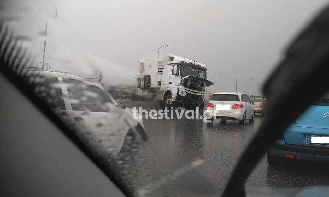 Τροχαίο στη Θεσσαλονίκη – «Δίπλωσε» νταλίκα στην έξοδο του Δερβενίου