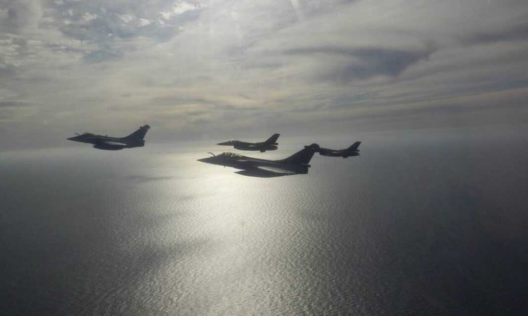 Όπως τονίζουν στρατιωτικές πηγές, «είναι μια εικόνα από το άμεσο μέλλον», μιας και σε λίγους μήνες τα γαλλικά γεράκια θα βαφτούν στα γαλανόλευκα και θα επιχειρούν μαζί με τα F-16 πάνω από το Αιγαίο.