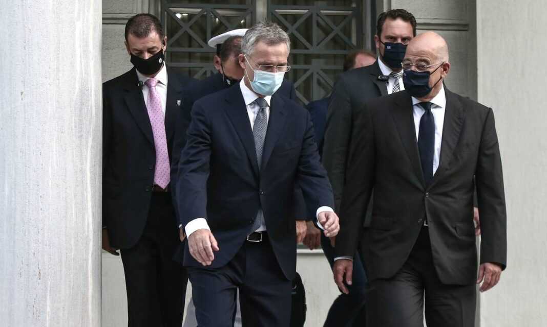 Νωρίτερα, στο υπουργείο Εξωτερικών βρέθηκε ο γενικός γραμματέας του ΝΑΤΟ Γενς Στόλτενμπεργκ , όπου τον υποδέχθηκαν ο υπουργός Εξωτερικών Νίκος Δένδιας και ο υπουργός Εθνικής Άμυνας Νίκος Παναγιωτόπουλος.