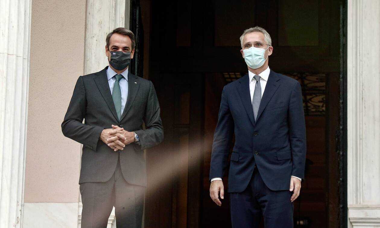 Αμέσως μετά ο γενικός γραμματέας του ΝΑΤΟ μετέβη στο Μέγαρο Μαξίμου προκειμένου να συναντήσει τον πρωθυπουργό, Κυριάκο Μητσοτάκη.
