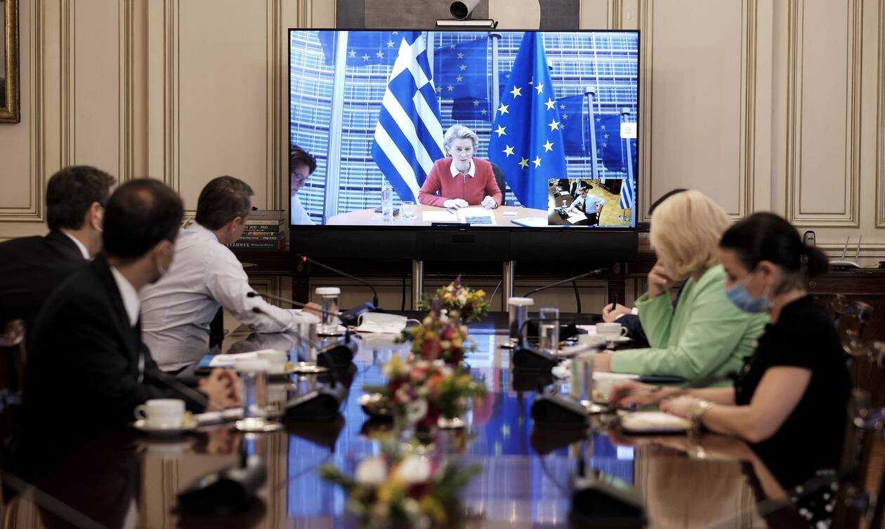 Σε κοινή δήλωση προχώρησαν Κυριάκος Μητσοτάκης και Φον ντερ Λάιεν μετά την τηλεδιάσκεψη που είχαν.