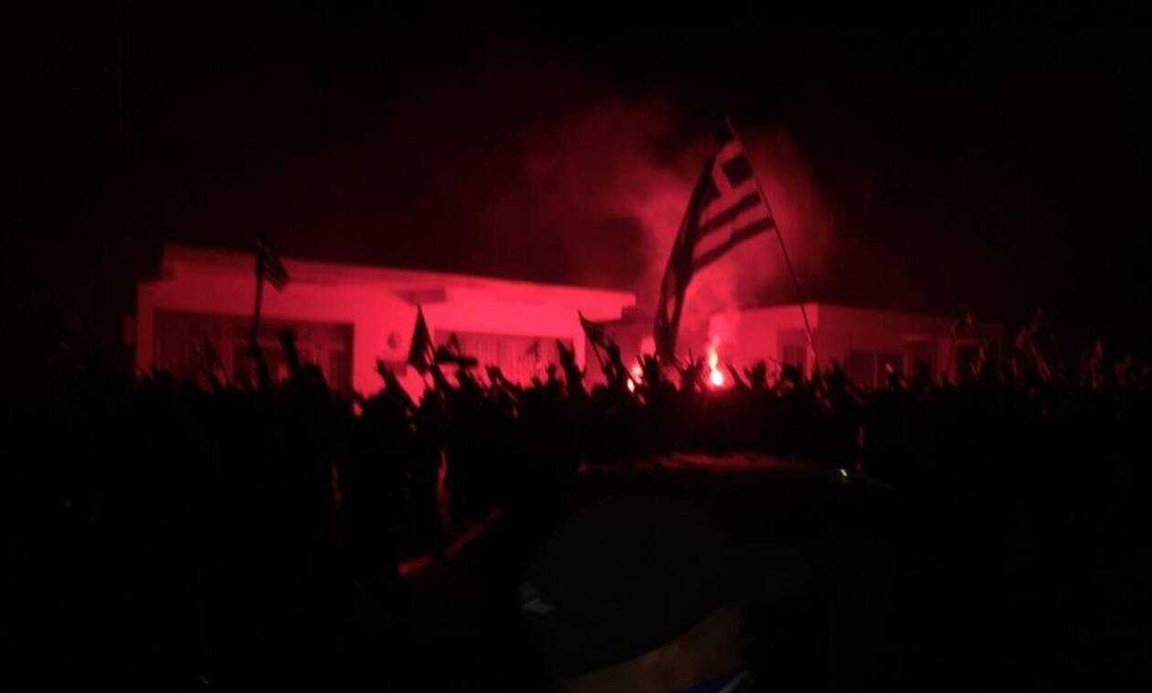 Πληροφορίες κάνουν λόγο ότι οι συγκεντρωμένοι κρατούσαν ρόπαλα και ελληνικές σημαίες, φορούσαν κουκούλες ενώ ακούστηκαν συνθήματα, «Η Κύπρος είναι Ελληνική».