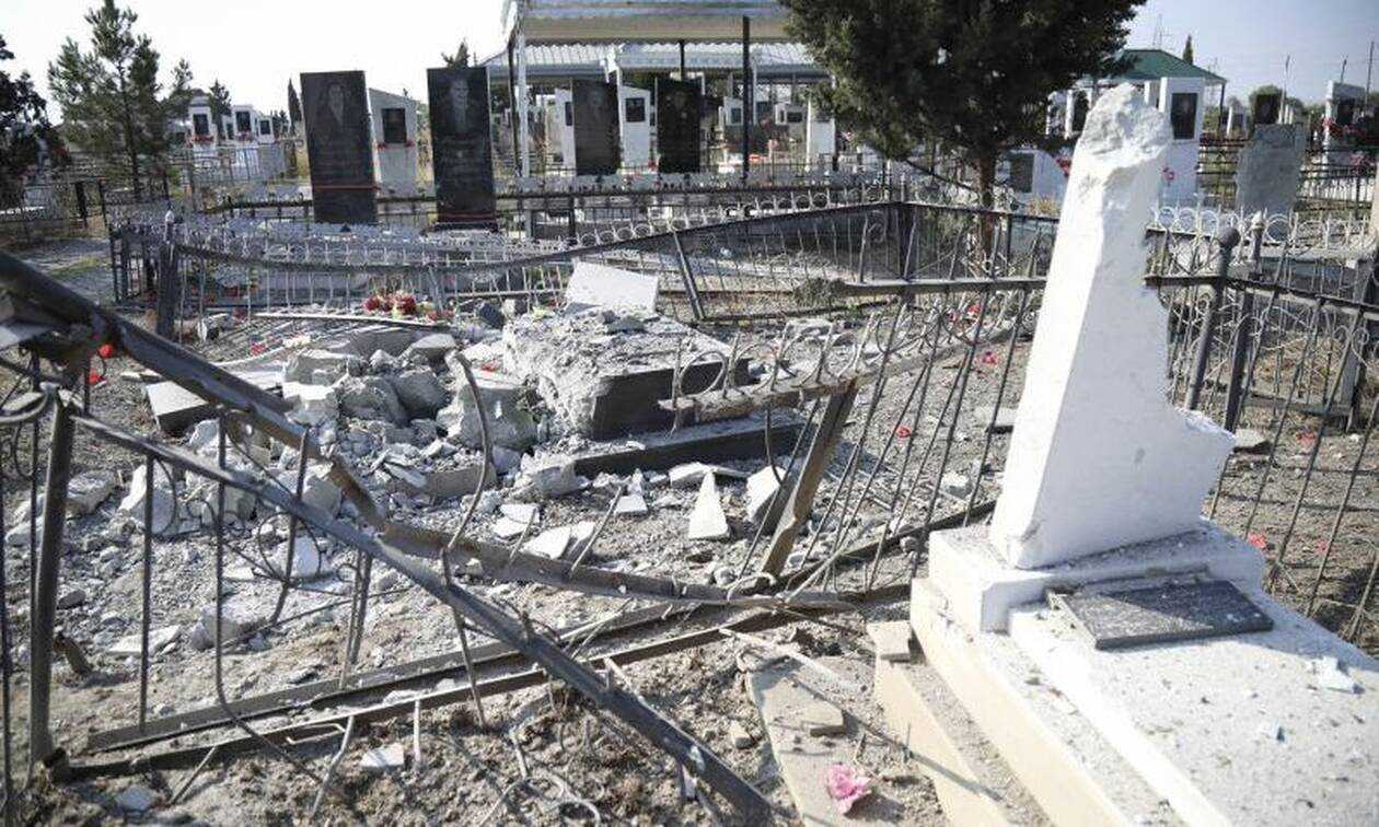 Στην ανάρτηση υπάρχουν φωτογραφίες από ένα βομβαρδισμένο νεκροταφείο, με το τουρκικό υπουργείο να υποστηρίζει πως η Αρμενία έχει χρησιμοποιήσει ακόμα και βόμβες φωσφόρου κατά αμάχων στις εχθροπραξίες στο Ναγκόρνο-Καραμπάχ.