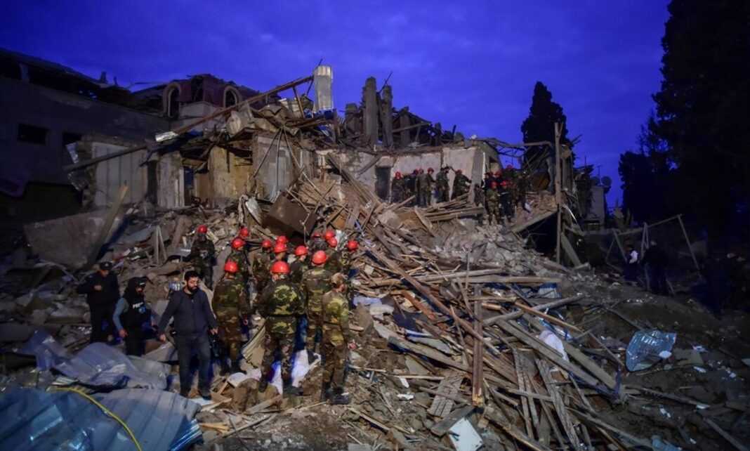 Πύραυλος έπληξε πολυκατοικία στην Γκαντσά, όπου κάτοικος είπε στο Γαλλικό Πρακτορείο ότι είδε τουλάχιστον επτά θύματα να ανασύρονται από τα συντρίμμια.