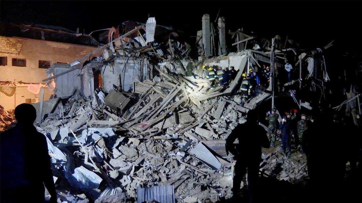 Πύραυλος έπληξε πολυκατοικία στην Γκαντσά, όπου κάτοικος είπε στο Γαλλικό Πρακτορείο ό,τι είδε τουλάχιστον επτά θύματα να ανασύρονται από τα συντρίμμια.