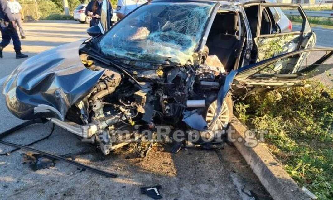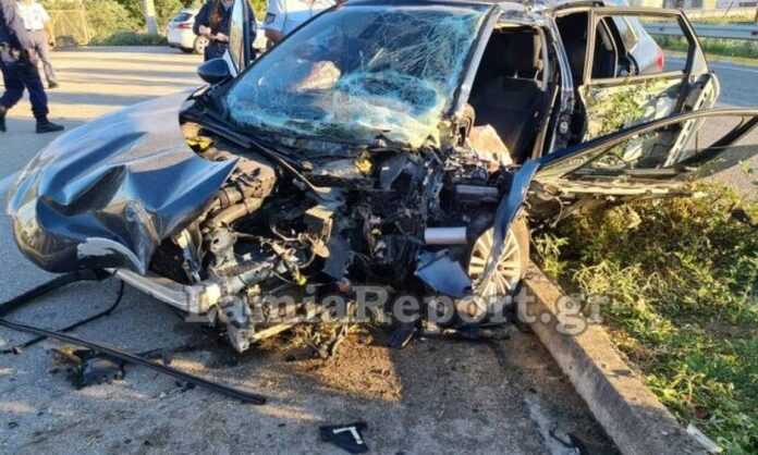 Ο οδηγός, που είναι ιερωμένος από Μοναστήρι της Αττικής, ερχόμενος προς Λαμία, από άγνωστη αιτία, έχασε τον έλεγχο και το όχημά έπεσε με σφοδρότητα πάνω στην τσιμεντένια κολόνα του παραδρόμου.