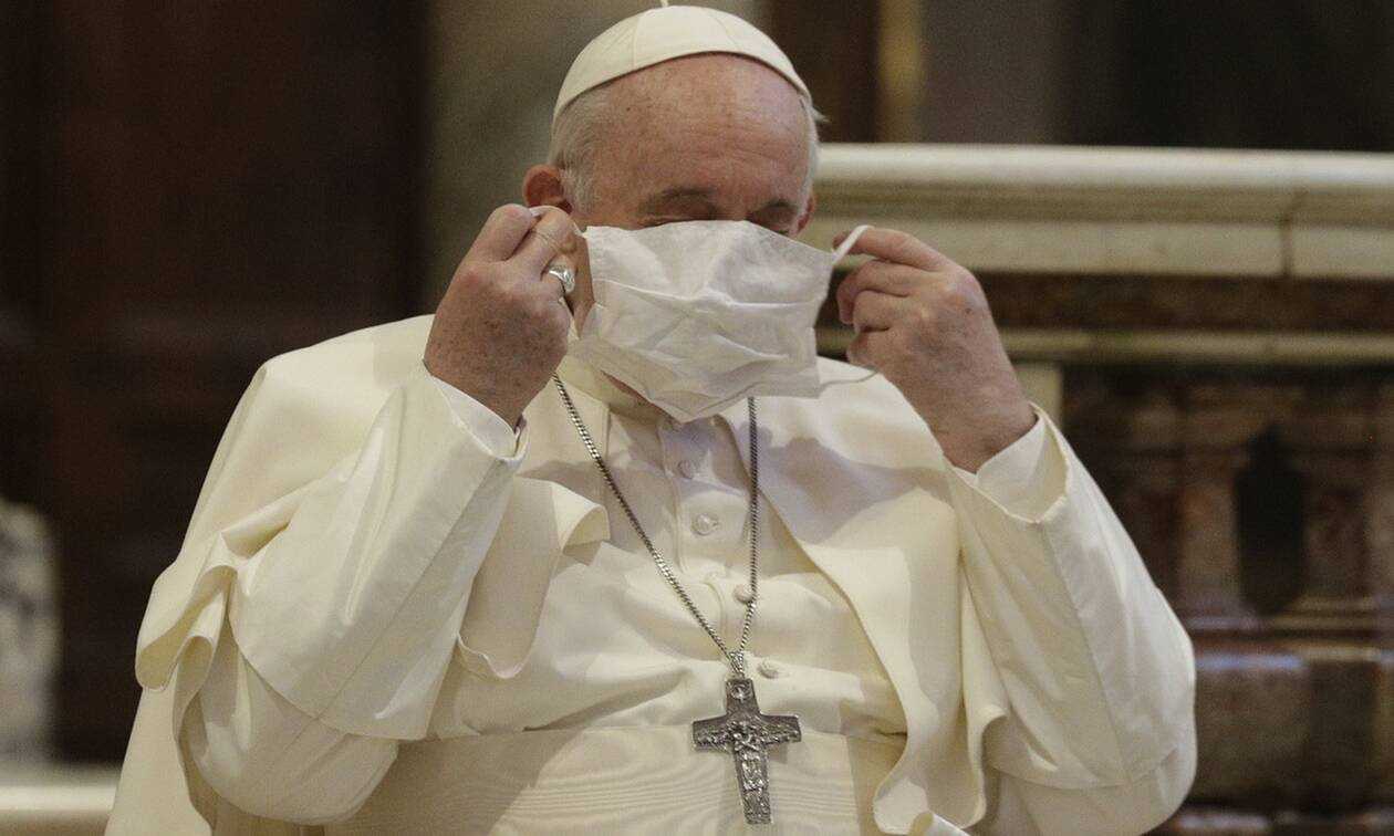 Ο ποντίφικας φόρεσε μια λευκή μάσκα κατά τη διάρκεια της λειτουργίας στη Βασιλική της Σάντα Μαρία ιν Αρατσέλι, στη Ρώμη. Προηγουμένως, φορούσε μάσκα μονάχα εντός του αυτοκινήτου που τον μετέφερε στις εβδομαδιαίες ακροάσεις του στο Βατικανό.