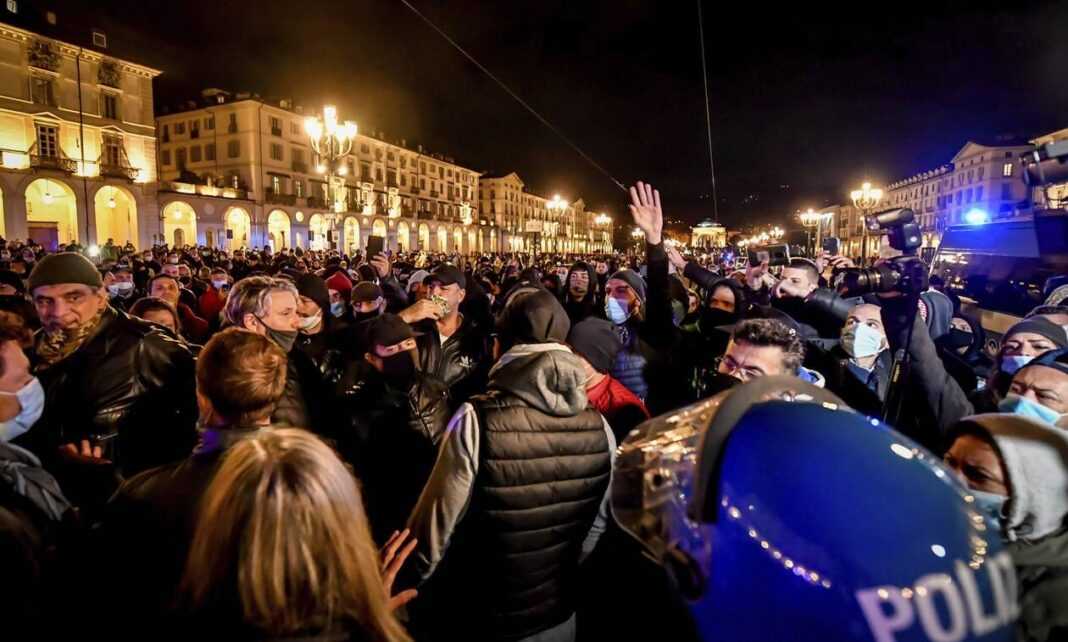 Στο Τορίνο, μέρος των διαδηλωτών πέταξε μπουκάλια και καπνογόνα προς το σημείο όπου βρίσκονταν οι αστυνομικοί. Στην συνέχεια, οι αστυνομικές δυνάμεις άρχισαν να τους απωθούν. Μερικές δεκάδες διαδηλωτές πέταξαν στον αέρα και ηλεκτρικά πατίνια, ενώ προσπαθούσαν να απομακρυνθούν από το σημείο των συγκρούσεων. Έως τώρα, πραγματοποιήθηκαν πέντε προσαγωγές.