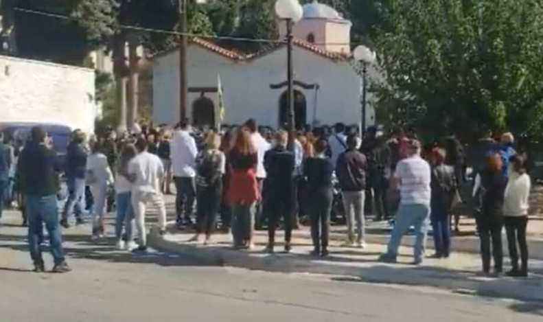 Οι συγγενείς, οι φίλοι, οι συμμαθητές κι οι καθηγητές, μα πάνω από όλα οι δυο τραγικές φιγούρες των γονιών των δυο παιδιών, συγκεντρώθηκαν στον Ιερό Ναό του Αγίου Χαράλαμπου στο Βαθύ, για να αποχαιρετήσουν τα δυο παιδιά που έφυγαν τόσο άδικα στη διάρκεια του σεισμού.