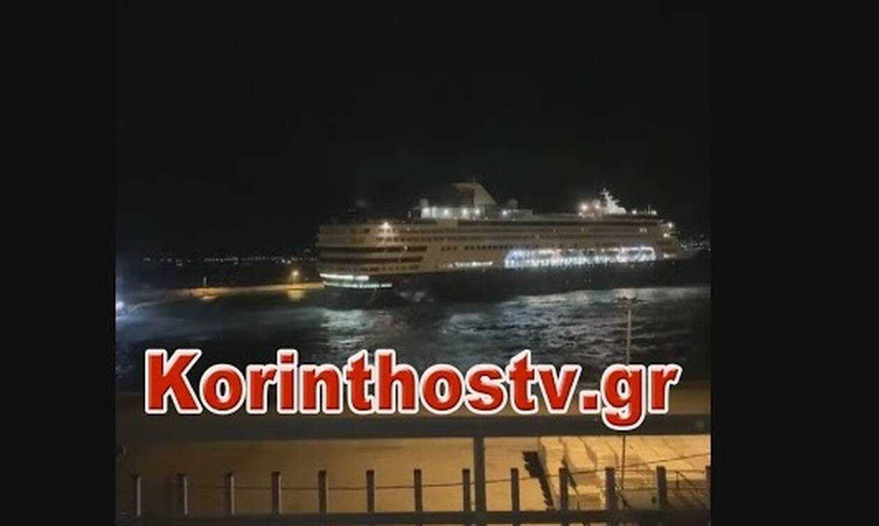 Κόρινθος: Η στιγμή που οι ισχυροί άνεμοι παρασύρουν κρουαζιερόπλοιο – Συγκλονιστικό βίντεο