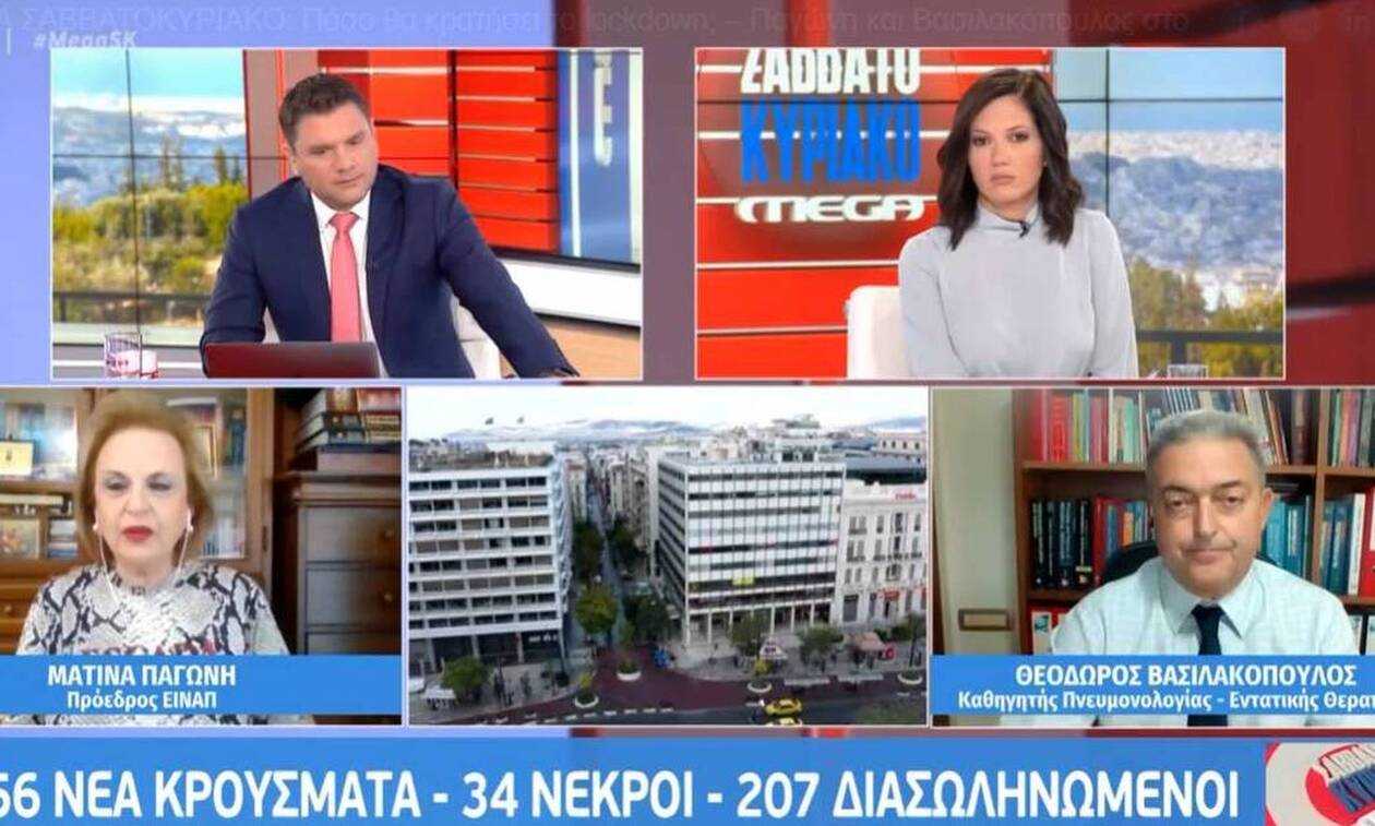 Lockdown: Για την πανδημία, την πίεση στο σύστημα υγείας και τα νέα μέτρα, μίλησαν μεταξύ άλλων, η κυρία Ματίνα Παγώνη, πρόεδρος ΕΙΝΑΠ και ο κ. Θεόδωρος Βασιλακόπουλος, καθηγητής Πνευμονολογίας Εντατικής Θεραπείας Ιατρικής Σχολής Πανεπιστημίου Αθηνών.