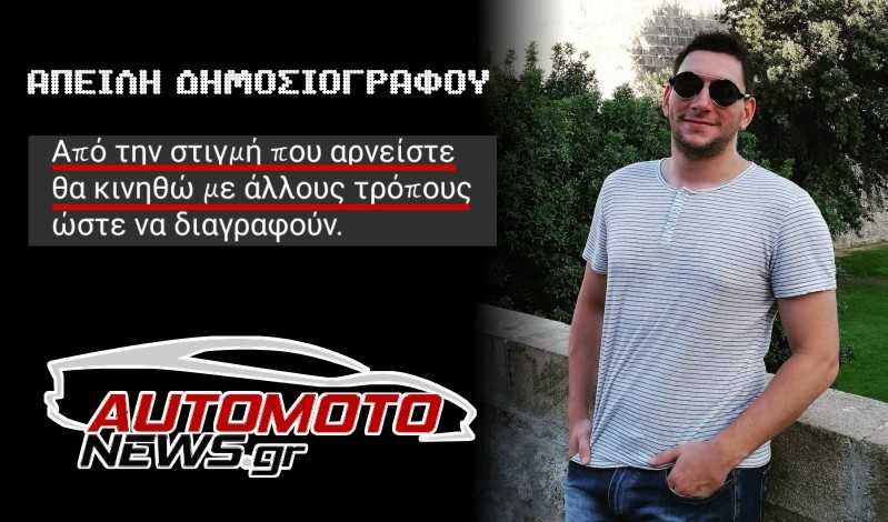 Νεαρός ιδιοκτήτης “ανύπαρκτου” site ειδικού τύπου, που δεν έχει καμία σχέση με τη δημοσιογραφία, έστειλε χθες το βράδυ απειλητικό μήνυμα κατά του δημοσιογράφου και διευθυντή του www.automotonews.gr Στάθη Κοκκορόγιαννη, ενός από τα κορυφαία portal ειδικού τύπου στην Ελλάδα.