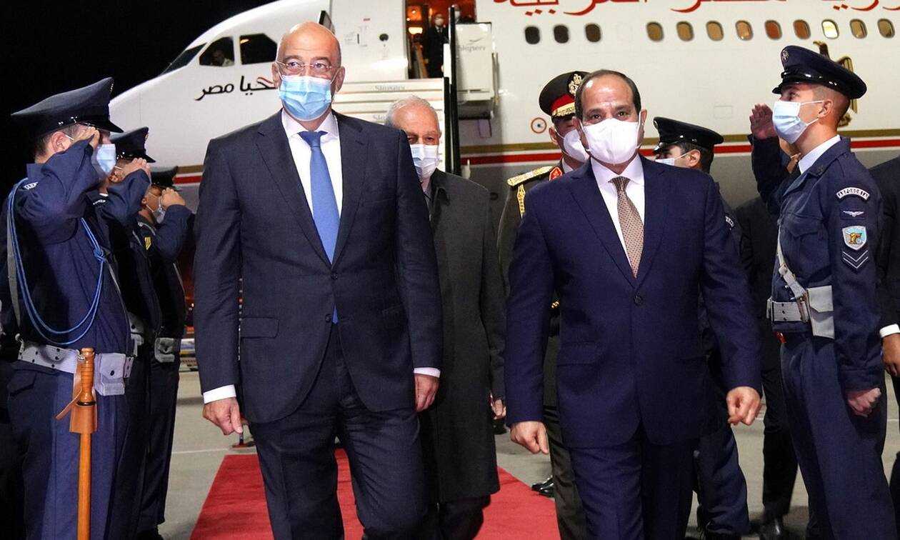 Τον Αιγύπτιο πρόεδρο υποδέχθηκε το βράδυ της Τρίτης (10/11), εκ μέρους της ελληνικής κυβέρνησης, ο υπουργός Εξωτερικών, Νίκος Δένδιας.