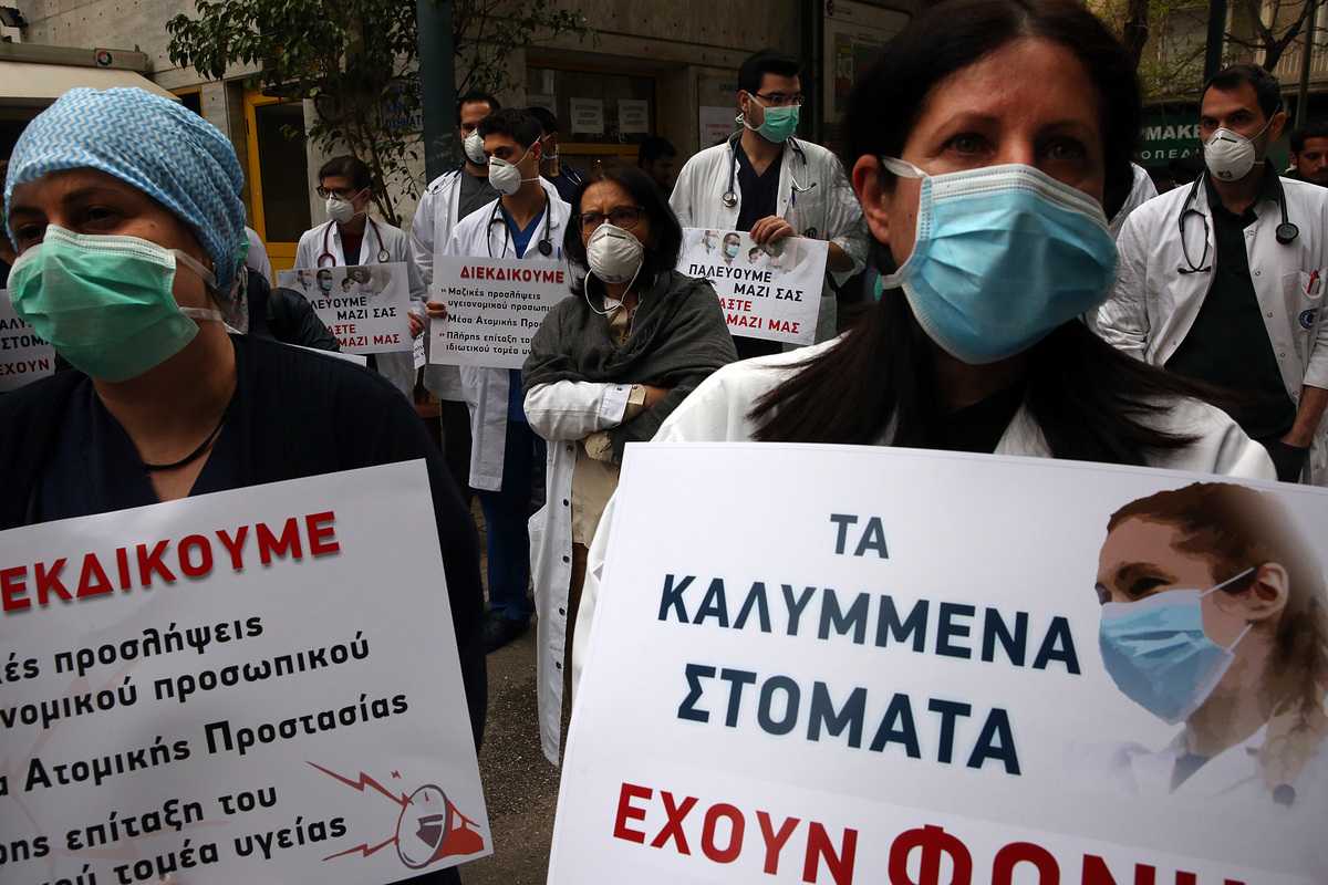 Γιατροί κινητοποιήσεις: Απαίτηση για την άμεση θωράκιση της δημόσιας υγείας. Κινητοποιήσεις στις εισόδους των νοσοκομείων προκειμένου το προσωπικό υγείας να εκφράσει τις δυσμενείς συνθήκες αλλά και την αβεβαιότητα που βιώνουν λόγω των ακάλυπτων αναγκών του δημόσιου συστήματος υγείας.