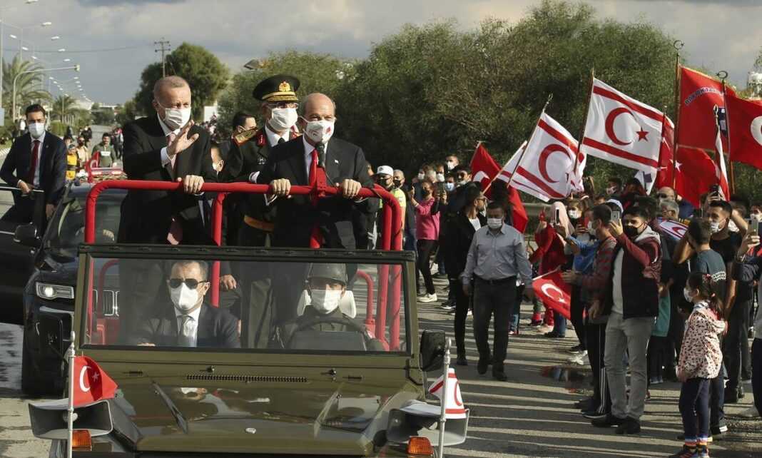 Με την Αμερική να βρίσκεται ουσιαστικά σε ακυβερνησία, την Ε.Ε. να είναι έρμαιο της Γερμανίας, τον ΟΗΕ να… πετάει αετό και το ΝΑΤΟ σε ρόλο Πόντιου Πιλάτου, ο Ερντογάν συνεχίζει τη δράση του κατά του Ελληνισμού. Ό,τι δεν είχε τολμήσει για σχεδόν μισό αιώνα η Τουρκία, το πραγματοποίησε την Κυριακή (15.11) ο Ταγίπ Ερντογάν, γράφοντας στα παλαιότερα των υποδημάτων του, τα ψηφίσματα του ΟΗΕ για την Αμμόχωστο, τις χλιαρές – όπως πάντα – εκκλήσεις της Ευρώπης, αλλά και την εξαγγελθείσα πρωτοβουλία του Αντόνιο Γκουτέρες, για σύγκλιση πενταμερούς διάσκεψης για το Κυπριακό.