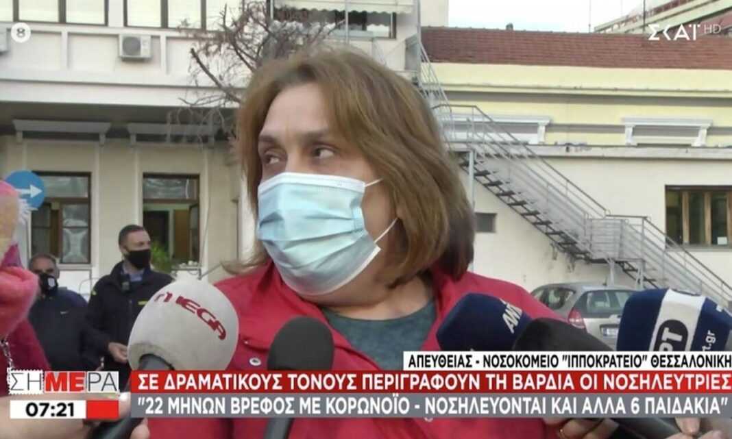 Σε απευθείας σύνδεση με τον ΣΚΑΪ σήμερα νωρίς το πρωί νοσοκόμα δήλωσε έξω από το Ιπποκράτειο νοσοκομείο της Θεσσαλονίκης ότι μεταφέρθηκε στις 11 το βράδυ μωρό 22 μηνών από τις Σέρρες.