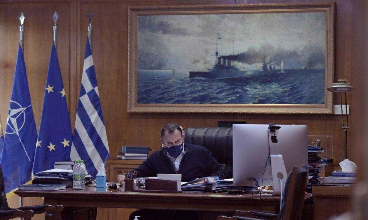 Συνεχείς συσκέψεις με στενούς συνεργάτες – Αρνητικό και το πέμπτο τεστ κορονοϊού στο οποίο υποβλήθηκε ο υπουργός Εθνικής Άμυνας – Σε προληπτική καραντίνα παραμένει ο κ. Νίκος Παναγιωτόπουλος, από την περασμένη Τρίτη.