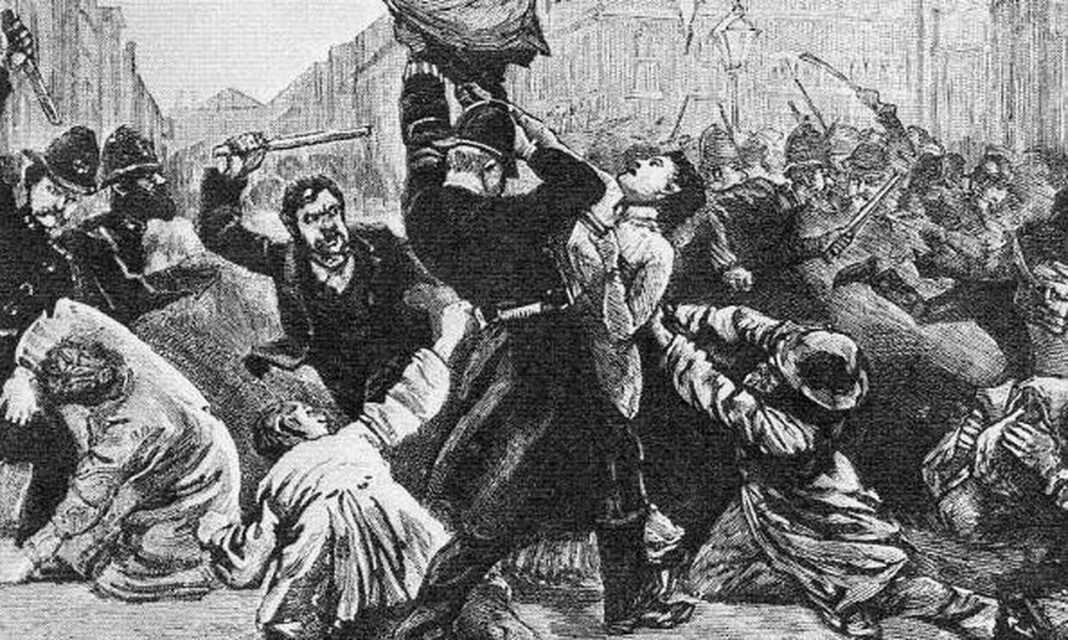 Στις 13 Νοεμβρίου 1887, οι σοσιαλιστές και οι αναρχικοί διοργάνωσαν μια μεγάλη διαδήλωση στο Λονδίνο για να καταγγείλουν τη βρετανική πολιτική στο Ιρλανδικό και την οικονομική πολιτική της κυβέρνησης των Τόρυδων (Συντηρητικών).
