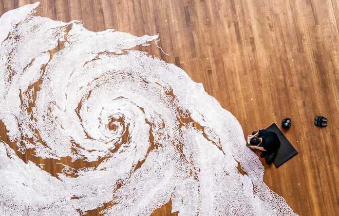 Τα… αλμυρά έργα του Motoi Yamamoto απαιτούν εκατοντάδες κιλά αλατιού και πολλές ώρες για να ολοκληρωθούν. Και μπορεί το αλάτι στη γνωστή μας κατάσταση να ρέει, καθώς αποτελείται από μικρούς κρυστάλλους, όμως στα χέρια του Ιάπωνα καλλιτέχνη υπακούει ακολουθώντας περίεργα σχήματα στο δάπεδο που μοιάζουν με δαντέλα ή ιστό αράχνης. Ακόμα γίνεται… αλατόσκαλα με επιδέξια καμωμένα σκαλοπάτια ή μεταμορφώνεται σε σκόρπια φύλλα του δάσους, βουνά, κάστρα και ουρανοξύστες.