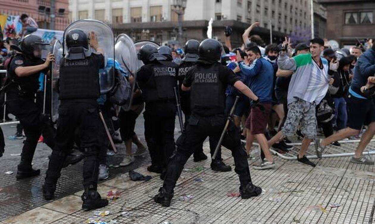 Τα τηλεοπτικά δίκτυα της Αργεντινής αναφέρουν πως η οργάνωση στην κηδεία του Μαραντόνα ήταν τραγική, με αποτέλεσμα να εξαγριωθεί ο κόσμος από την πολύωρη αναμονή και να ξεσπάσουν επεισόδια. Αρκετοί εισέβαλαν στον χώρο όπου ήταν η σορός του «Ντιεγκίτο», η αστυνομία απάντησε με πλαστικές σφαίρες, δακρυγόνα και «Αύρες» στους δρόμους για να μπορέσει να περιορίσει τον κόσμο.