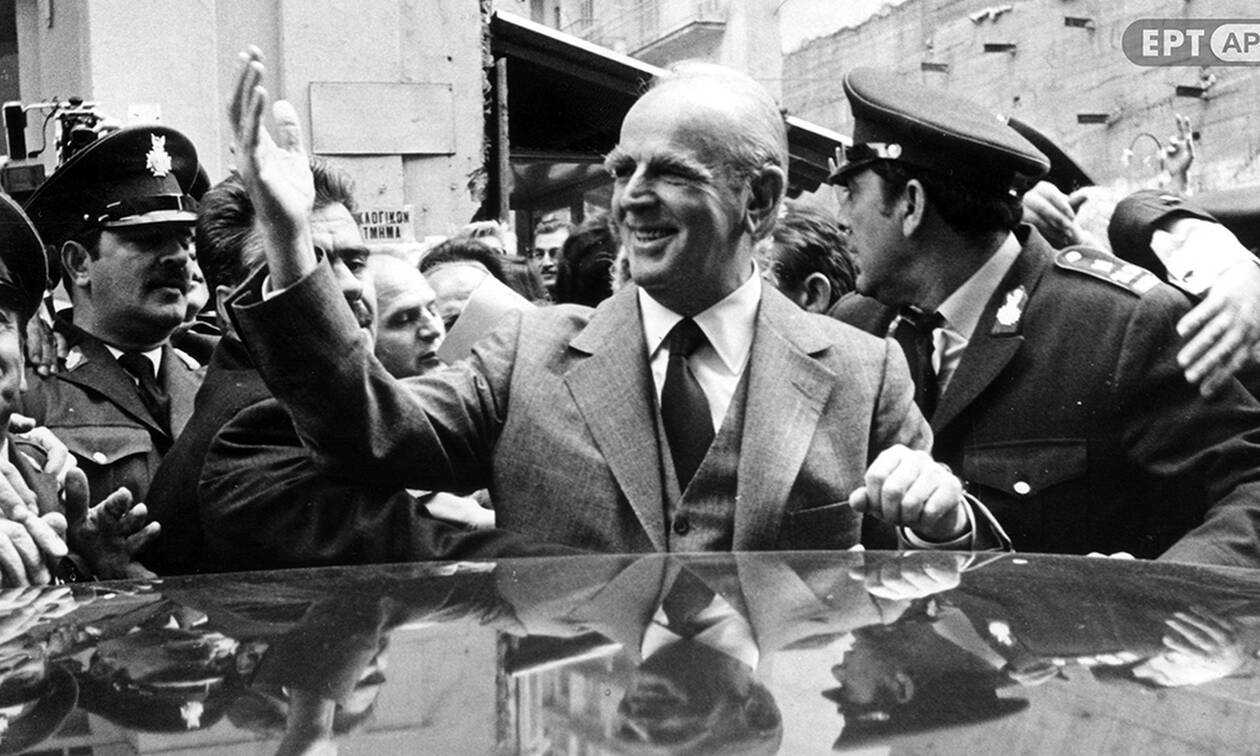 Το δίλημμα λοιπόν εκείνης της περιόδου είναι γνωστό: «Καραμανλής ή τανκς», όπως το έθεσε εύστοχα ο Μίκης Θεοδωράκης. Ο «Εθνάρχης» προσγειώνεται στην Αθήνα για να ηγηθεί της μεταβατικής κυβέρνησης εθνικής ενότητας και να επαναφέρει τη δημοκρατική νομιμότητα στη χώρα. Θυμίζουμε για την Ιστορία ότι η Νέα Δημοκρατία ήταν το τέταρτο κατά σειρά κόμμα απ’ όπου πέρασε ο Καραμανλής, ιδρύοντας μάλιστα δύο εξ αυτών: Βουλευτής εκλέχτηκε για πρώτη φορά με το Λαϊκό Κόμμα, κατόπιν μετακόμισε στον Ελληνικό Συναγερμό του στρατάρχη Παπάγου, πριν τον καταργήσει και ιδρύσει το 1956 την προσωποπαγή Εθνική Ριζοσπαστική Ένωση (ΕΡΕ). Η οποία μετεξελίχθηκε το 1974 στη Νέα Δημοκρατία.