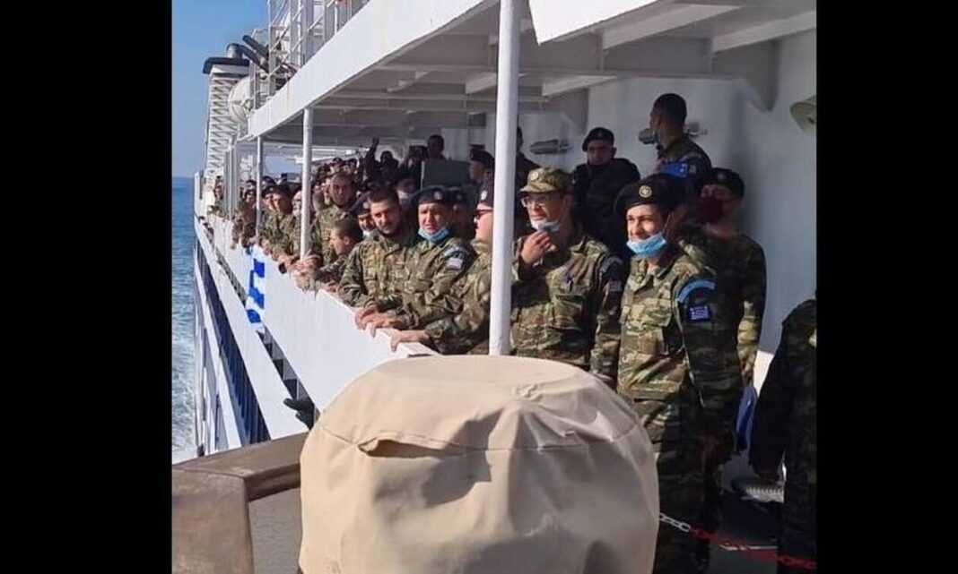 Το βίντεο ανήρτησε στο Facebook συνεργάτης του εφοπλιστή Φώτη Μανούση από το πλοίο που μετέφερε τους στρατιώτες στο ακριτικό νησί.