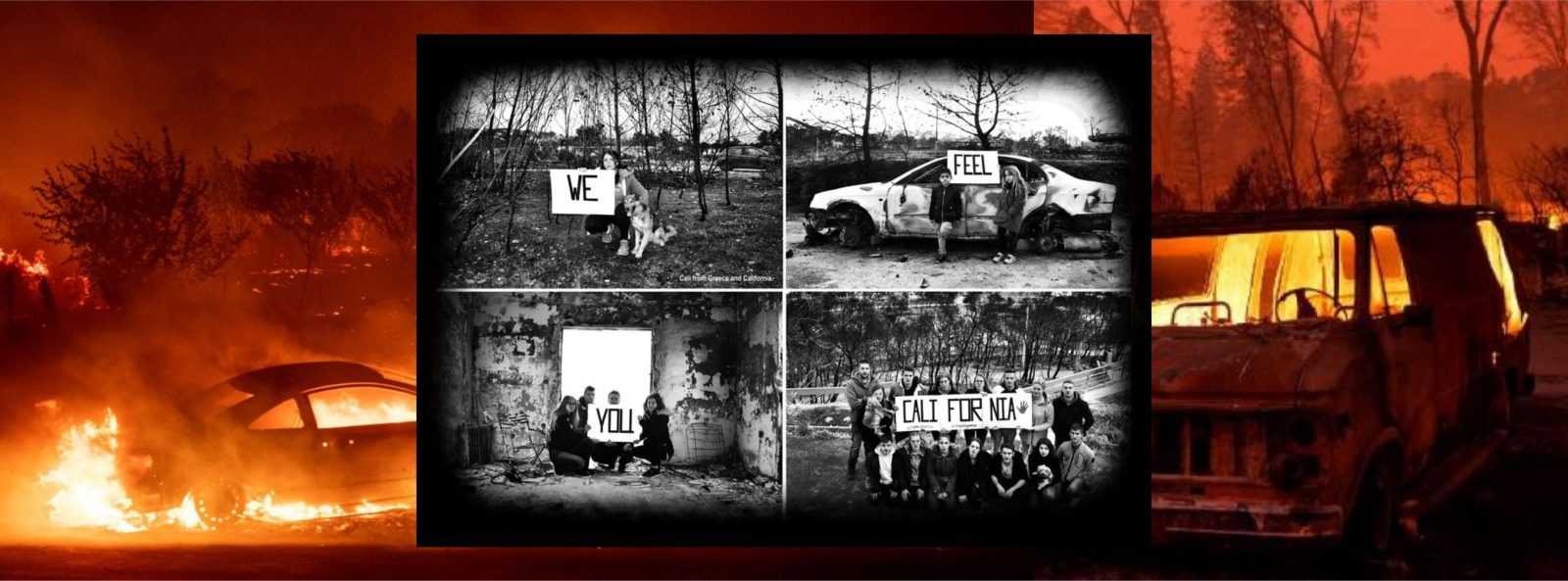 «Σε νιώθω Καλιφόρνια» έγραψαν σε πλακάτ (στα αγγλικά) και φωτογραφήθηκαν με φόντο το λεηλατημένο από τις φλόγες της 23ης Ιουλίου τόπο τους.