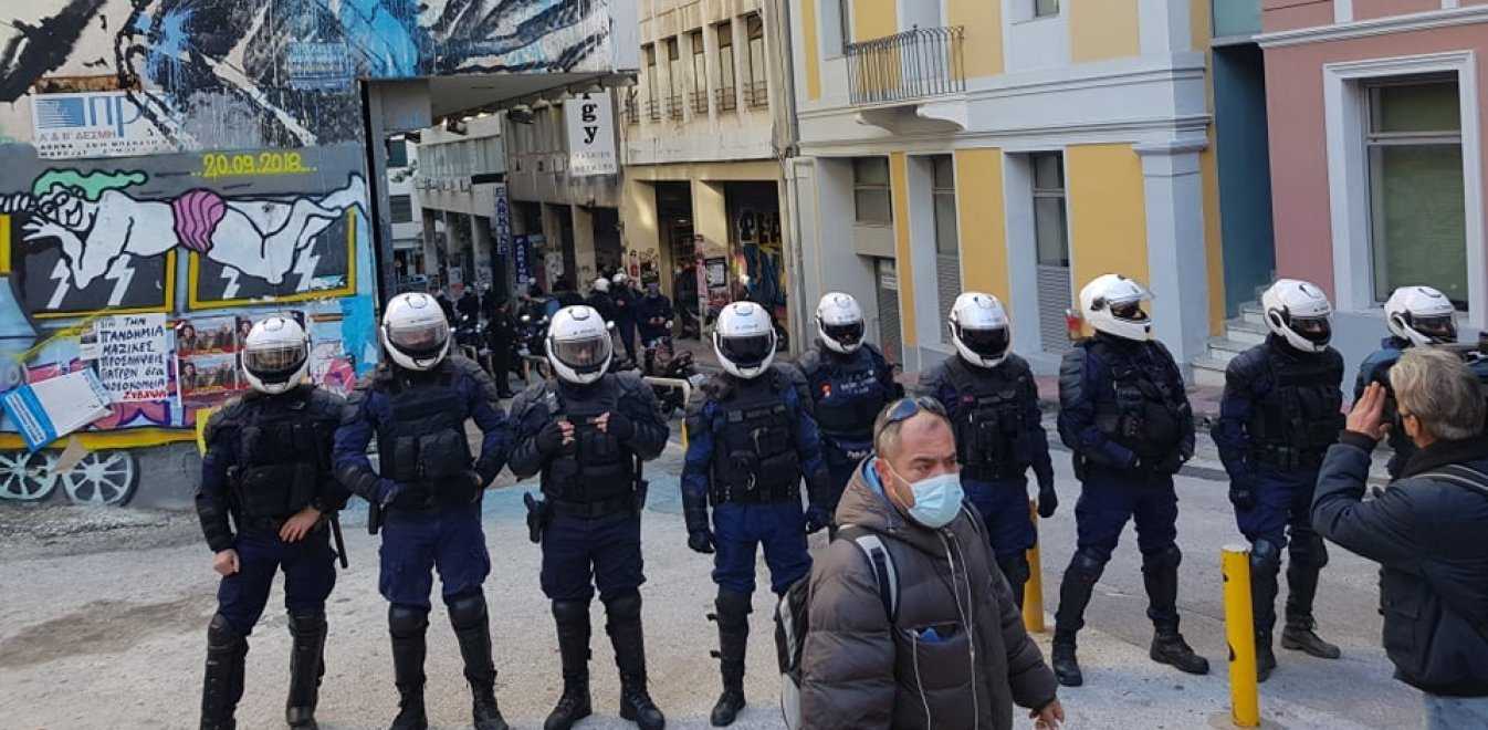 Από νωρίς το πρωί στην πλατεία της δημοτικής αγοράς είχαν συγκεντρωθεί αστυνομικές δυνάμεις, καθώς υπήρχε απαγόρευση συγκεντρώσεων λόγω των μέτρων για την πανδημία. Λίγο μετά τις 12 το μεσημέρι στο πεζοδρόμιο απέναντι από την πλατεία άρχισαν να συγκεντρώνονται πολίτες που κρατώντας δύο πανό επιχείρησαν να πραγματοποιήσουν πορεία παρά τις συστάσεις της ΕΛΑΣ να διαλυθούν.