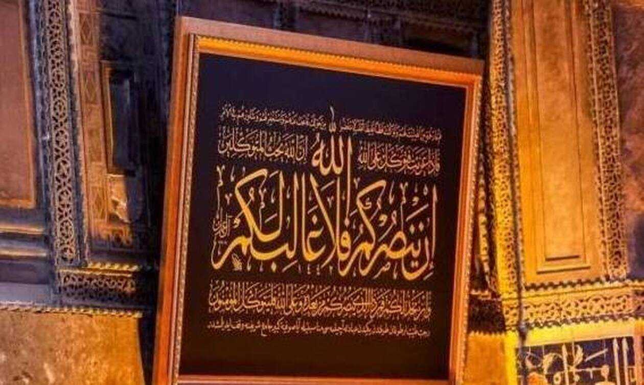 Ο Τούρκος πρόεδρος, Ρετζέπ Ταγίπ Ερντογάν, δώρισε στην Αγιά Σοφιά πίνακα με στίχους από το Κοράνι, ο οποίος κρεμάστηκε ήδη μέσα στο μνημείο.