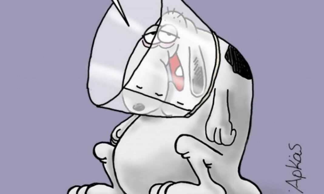 Στο σημερινό σκίτσο του Αρκά, βλέπουμε έναν από τους γνωστούς σκύλους – ήρωές του να φορά προστατευτικό κολάρο και να μας λέει «καλημέρα», σημειώνοντας: «Μ’ αρέσει που κάποιοι βρίσκουν ενοχλητικές τις μάσκες».