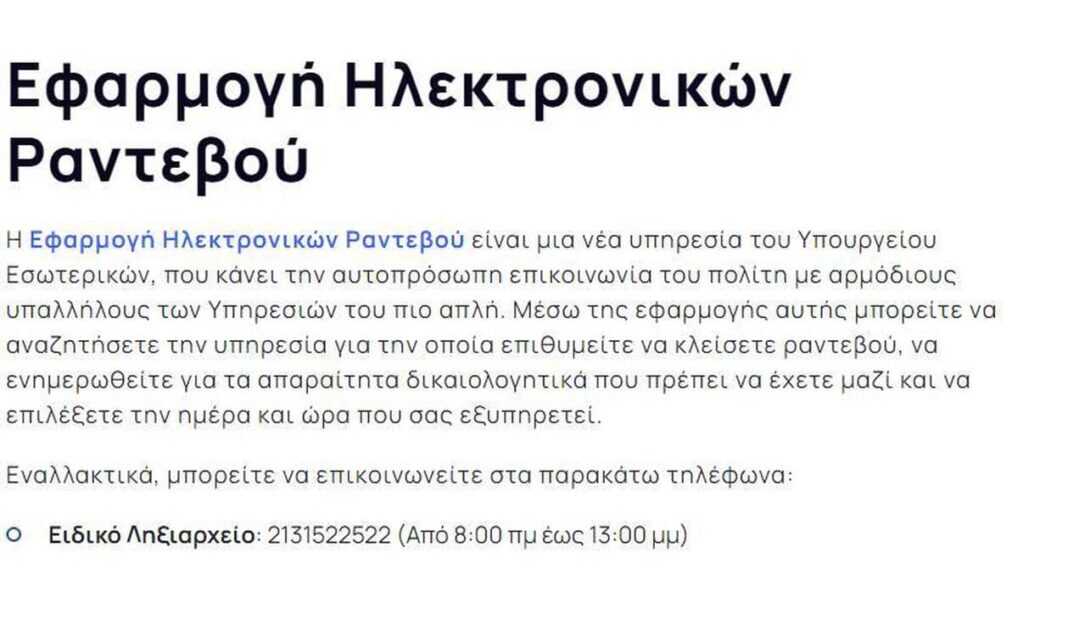 Όπως αναφέρει το υπουργείο Εσωτερικών, η λειτουργία των ηλεκτρονικών ραντεβού θα επεκταθεί σταδιακά και σε άλλες υπηρεσίες του Δημοσίου.