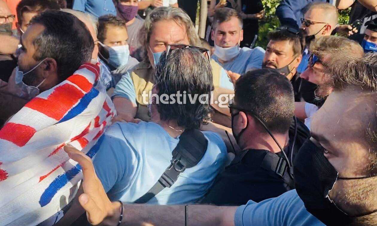 Ένταση επικράτησε κατά την αποχώρηση του πρωθυπουργού από το δημαρχείο Καλαμαριάς.
