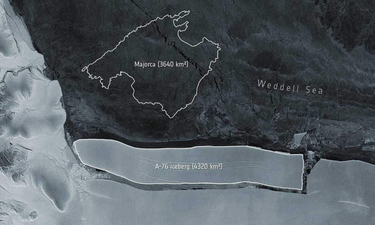 Σύμφωνα με τον ΕΟΔ, (Ευρωπαϊκό Οργανισμό Διαστήματος), το παγόβουνο εντοπίστηκε σε πρόσφατες εικόνες που κατέγραψε η αποστολής Copernicus Sentinel-1. Έχει μήκος περίπου 170 χλμ και πλάτος 25, και είναι λίγο μεγαλύτερο από τη Μαγιόρκα.