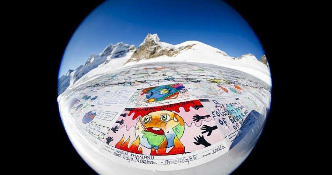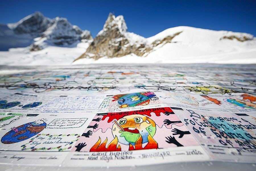 Η εν λόγω κάρτα ξεδιπλώθηκε την Παρασκευή κατά μήκος ενός παγετώνα στην Ελβετία, με στόχο να στείλει ένα μήνυμα επαγρύπνησης για την κλιματική αλλαγή.