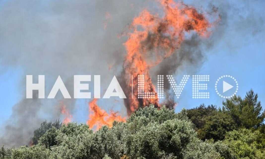 Η φωτιά ξεκίνησε, σύμφωνα με πληροφορίες του Ilialive, από αγροτική έκταση και επεκτάθηκε σε πρανές λόφου και πήρε διαστάσεις.