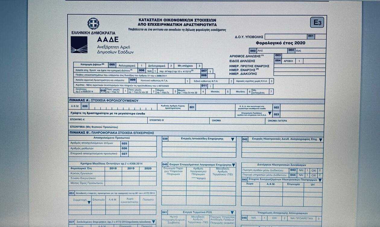 Το υπουργείο Οικονομικών έδωσε στη δημοσιότητα τον τύπο και το περιεχόμενο του νέου εντύπου Ε3 και την κατάσταση φορολογικής αναμόρφωσης για το φορολογικό έτος 2020. Το νέο έντυπο περιλαμβάνει αρκετές αλλαγές και προσθήκες σε σχέση με το περυσινό.
