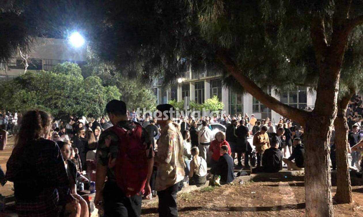 Από τις βραδινές ώρες της Παρασκευής και μέχρι τις πρώτες πρωινές ώρες του Σαββάτου η κατάσταση που επικρατούσε μπροστά από την Φιλοσοφική Σχολή του ΑΠΘ θύμιζε εποχές προ κορονοϊού.