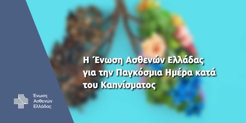Με αφορμή την Παγκόσμια Ημέρα κατά του Καπνίσματος, η Ένωση Ασθενών Ελλάδας στέλνει το δικό της μήνυμα υπέρ της υγείας και της ζωής και καλεί την ελληνική πολιτεία να επικεντρωθεί στρατηγικά 1) στην προαγωγή της πρόληψης για την αποτροπή έναρξης του καπνίσματος ειδικά σε εφήβους και νέους 2) στην προστασία των μη καπνιστών από το παθητικό κάπνισμα 3) στην ενίσχυση των ιατρείων διακοπής καπνίσματος σε όλη τη χώρα και 4) στον έλεγχο και τη ρύθμιση θεμάτων που αφορούν στα νέα προϊόντα καπνού στη βάση της μείωσης της βλάβης.