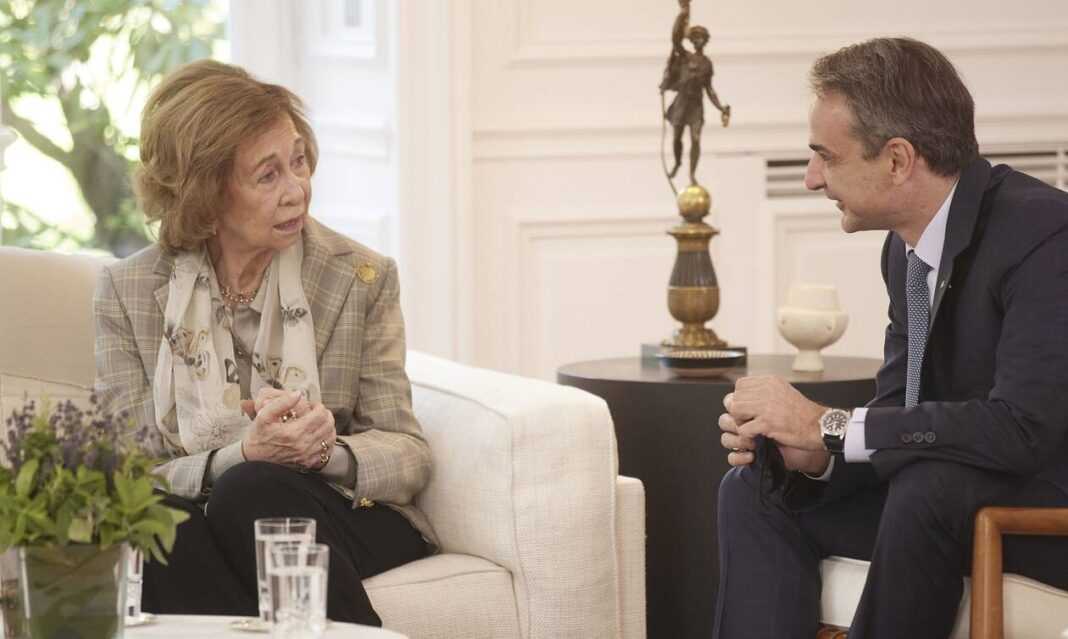 Συνάντηση με την βασίλισσα της Ισπανίας Σοφία είχε την Παρασκευή ο Κυριάκος Μητσοτάκης και η σύζυγός του Μαρέβα Γκραμπόφσκι – Μητσοτάκη στο Μέγαρο Μαξίμου.