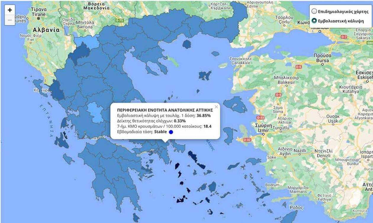 Κορονοϊός: Αυτοί είναι οι νέοι χάρτες για την εξέλιξη της πανδημίας και των εμβολιασμών στην Ελλάδα