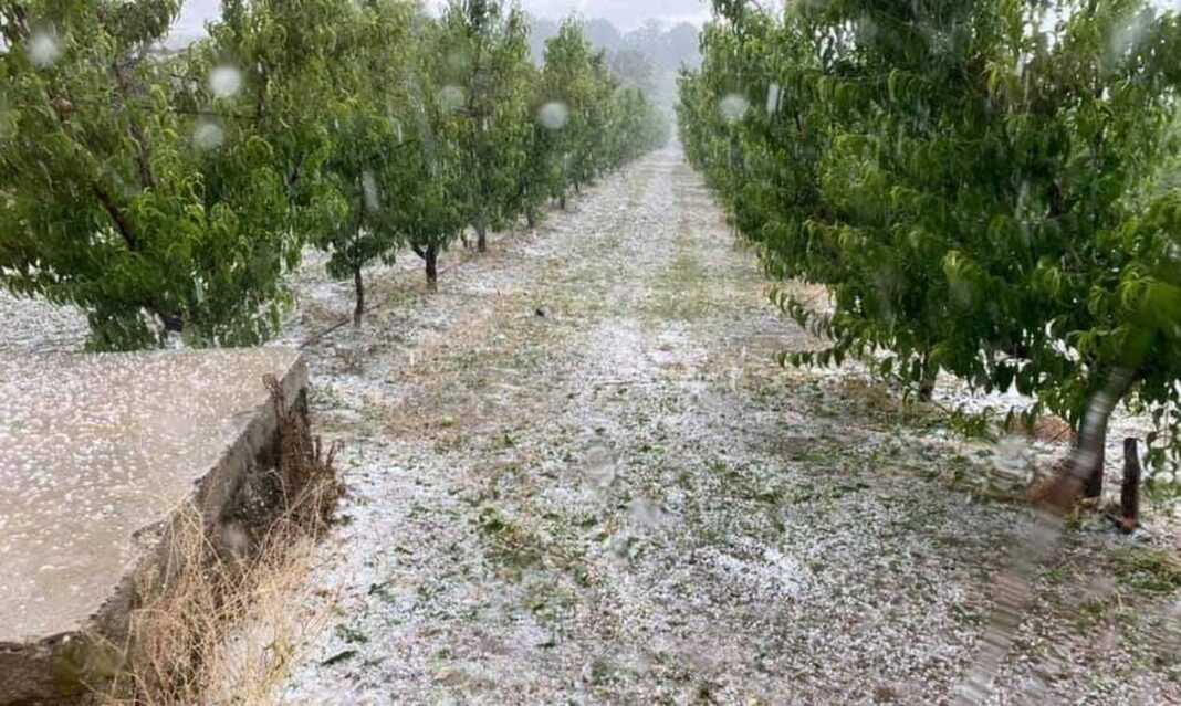 Σφοδρή καταιγίδα και χαλαζόπτωση έπληξαν λίγο μετά τις 3 το μεσημέρι το Βελβεντό, ενώ εκφράζονται φόβοι για νέες καταστροφές στις καλλιέργειες ροδάκινου.