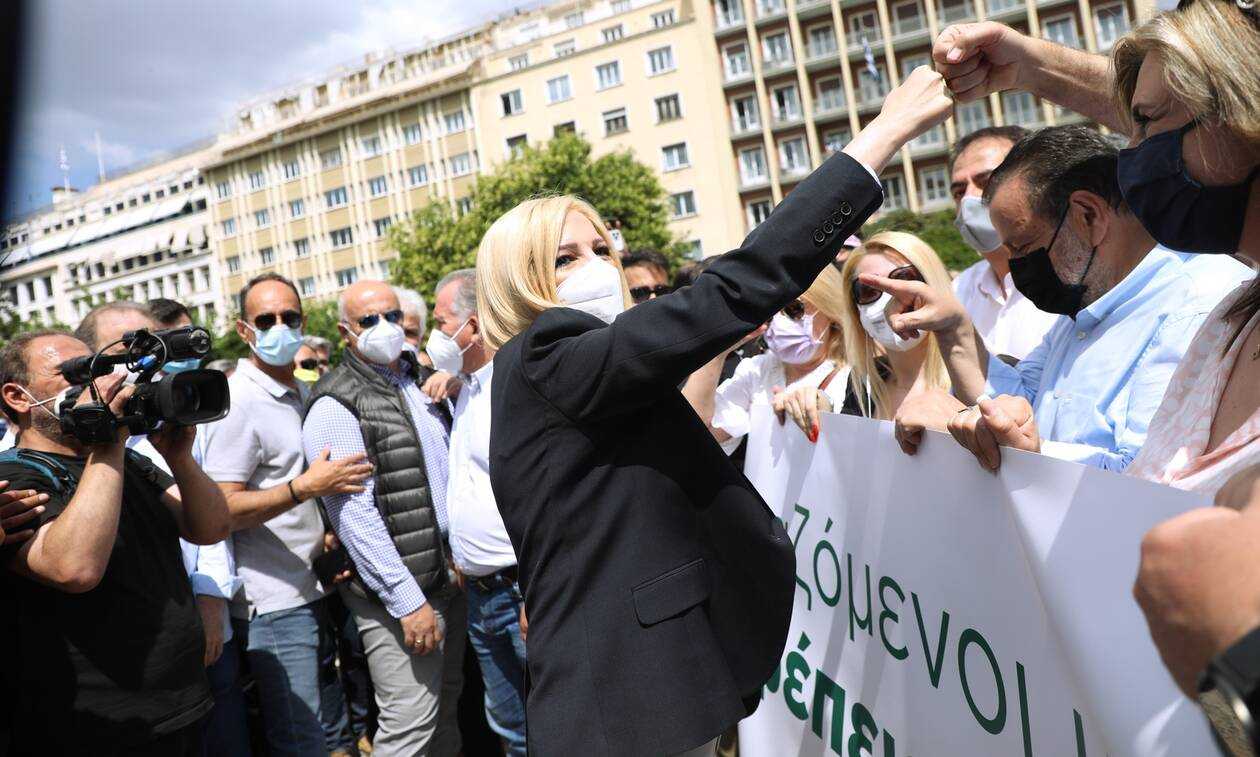 Στο κέντρο της Αθήνας βρίσκεται και η πρόεδρος του ΚΙΝΑΛ, Φώφη Γεννηματά.