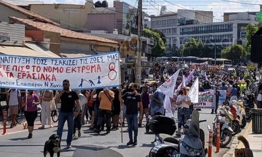 Με τη συμμετοχή σειράς σωματείων εργαζομένων ιδιωτικού και δημοσίου τομέα, πραγματοποιήθηκε την Πέμπτη, ημέρα πανελλαδικής απεργίας, στα Χανιά, το συλλαλητήριο κατά των αλλαγών στην εργασιακή νομοθεσία που προωθούνται από την κυβέρνηση.