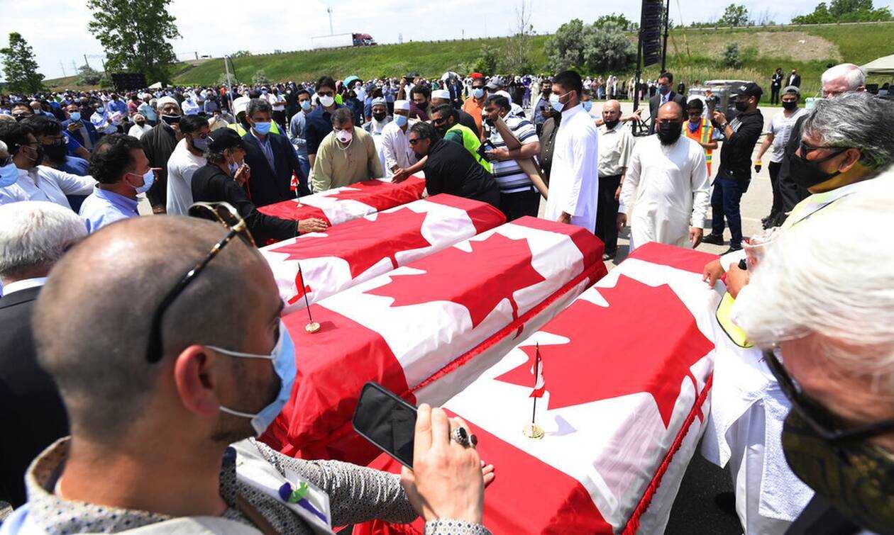Η πόλη του Λόντον στο Οντάριο απέτισε σήμερα ύστατο φόρο τιμής στη μουσουλμανική οικογένεια που δολοφονήθηκε, όταν ένας 20χρονος έριξε σκόπιμα το φορτηγάκι του πάνω της για να την ξεκληρίσει, μια ενέργεια που συγκλόνισε τον Καναδά και χαρακτηρίστηκε τρομοκρατική από τον πρωθυπουργό Τζάστιν Τριντό.